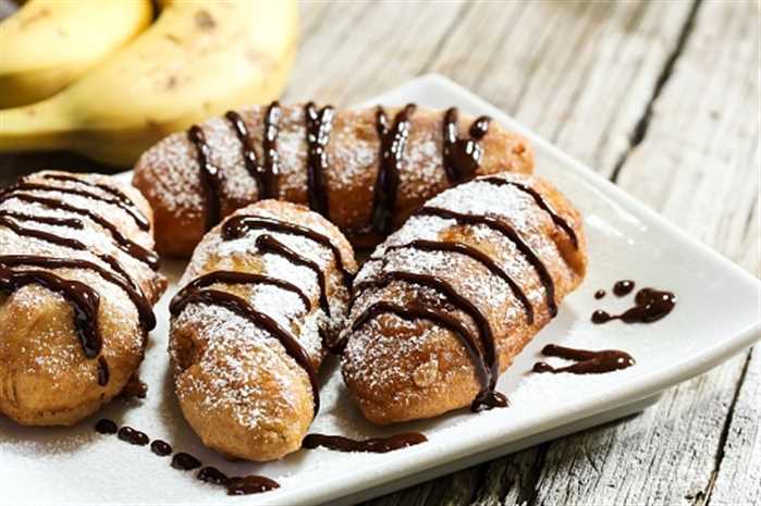Yağ dərin tavaya tökülür, əridilir. İçliyə bulaşdırılan bananlar qaynar yağda qızılı rəng alınana qədər qızardılır.