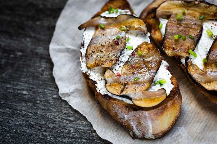 1 dilim tost çörəyi iki yerə bölünür. Sotelənən göbələklərin içərisindən dəfnə yarpağı çıxarılır. Sonra qızarmış çörəklərin üzərinə göbələklər çəkilir, üzərinə də parmesan səpilir.