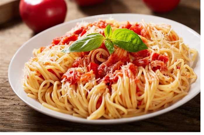 Sous hazırlanır: kub-kub doğranmış pomidorlar, tomat pastası, əzilmiş sarımsaq tavada əriyən yağda bişirilir.